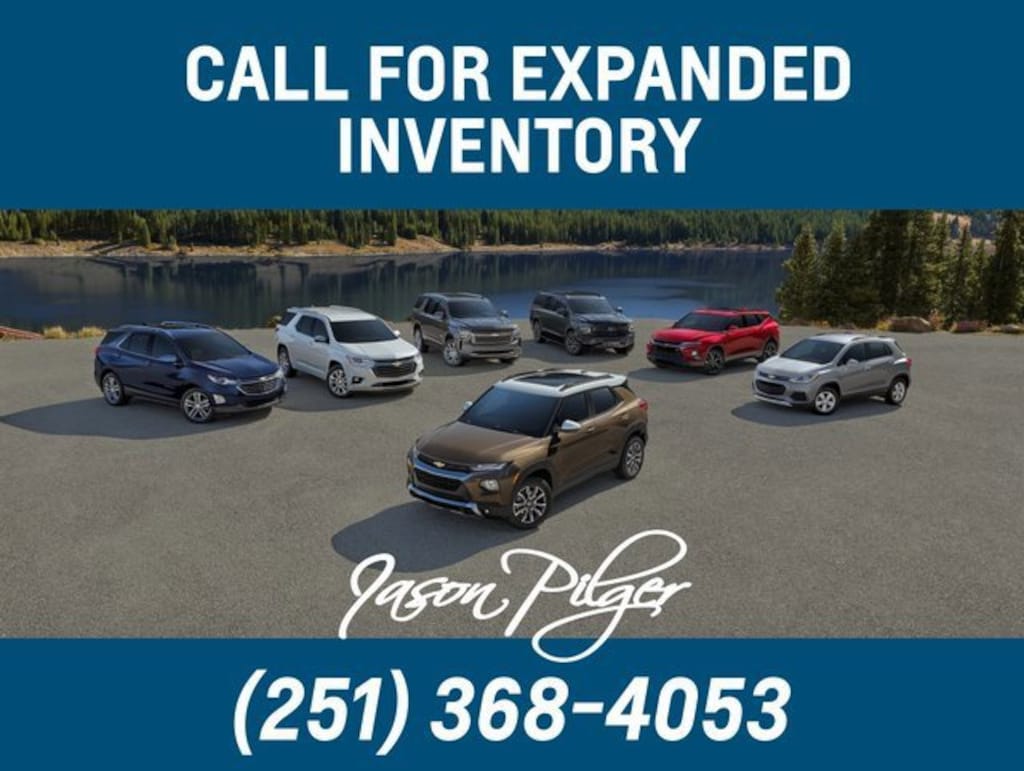 Jason Pilger Chevrolet, Where Friends Become Family. We Deliver! Call Dealer for Details. Tax, title, license and dealer fees (unless itemized above) are extra. Not available with special finance or lease offers. Most Pre-Owned Vehicles are fully-reconditioned. While great effort is made to ensure the accuracy of the information on this site, errors do occur so please verify information with a customer service rep. This is easily done by calling us at 251-368-4053 or by visiting us at the dealership. *All prices are after rebates and incentives. Prices are subject to change and may not reflect added equipment or upgrades. Most vehicles come with Jason Pilger's Guaranteed Lifetime Warranty, at No Cost to You! No Max Miles, No Max Term, No Deductible! Call dealer for details and verification of availability.